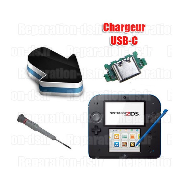 Reparation-ds.fr votre spécialiste en réparation de consoles de jeux vidéo vous propose la modification de la prise chargeur de votre console Nintendo 2DS par un connecteur USB-C.